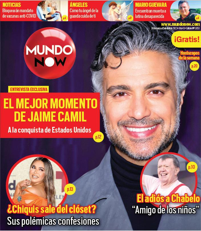 ÁNGELES NOTICIAS MARIO GUEVARA Cómo tu ángel de la guarda cuida de ti Bloquearán mandato de vacunas anti-COVID Encuentran muerta a latina desaparecida p.10 El adiós a Chabelo “Amigo de los niños” p.17 p.5 www.mundonow.com ¡Gratis! A la conquista de Estados Unidos p.12 EL MEJOR MOMENTO DE JAIME CAMIL ¿Chiquis sale del clóset? Sus polémicas confesiones p.13 p.20 Horóscopos de la semana ENTREVISTA EXCLUSIVA p.6 30 de marzo al 5 de abril de 2023 • Año 43 • Edición N0 1,653