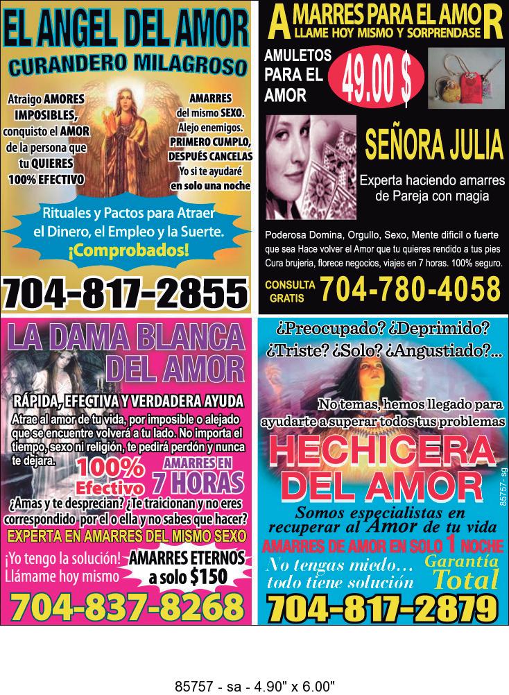 personal www.geovanaaispuro.com MUNDONOW | Atlanta | 1 al 7 de septiembre de 2022 www.mundonow.com | 19 LA GRAN 678-951-0008LLANERA¡SOMETO, AMARRO, DOMINO Y AMANSO! ¿SUFRES POR UN AMOR QUE TE DESPRECIA? NO DEJES QUE TU FELICIDAD SE ACABE POR CULPA DE OTROS, CON MI GRAN QUE ESTÁ CAMBIANDO VIDAS. RECUPERA Y CONQUISTA AL AMOR DE TU VIDA “HOY” NO BUSQUES MÁS... AQUÍ ESTÁ LA SOLUCIÓN SERIEDAD Y DISCRECIÓN ABSOLUTA LLAMA AL ����������������������������������������������� HOY MISMO ¿TE VA MAL EN EL AMOR? ¿SUFRES EN SILENCIO? ������������������� ¡NO ESPERES MÁS! TENGO LA EXPERIENCIA PARA TENERLO RENDIDO Y DOMINADO A TUS PIES, CONMIGO ENCONTRARÁS LA SOLUCIÓN A TUS PROBLEMAS; PARA MÍ NADA ES IMPOSIBLE.100% Garantizado ���������������������� LLAME HOY MISMO Y 240-252-4633SORPRENDASE49.00 Experta haciendo Amarres de Parejas con magia Poderosa - Domina, Orgullo, Sexo y Mente, hago volver al Amor que tu quieres rendido a tus SEGURO100%pies. HAGO AMARRES DEL MISMO SEXO 404-220-7729 RAPIDOS - FUERTES Y SEGUROS PRIMERO CUMPLO DESPUES CANCELAS PAGO UNICO 678-608-2255 Sufres y lloras porque el amor se alejo de tí? tienes problemas en el hogar, con el esposo(a), amante, novio(a) o enamorado(a)? tu matrimonio se destruye? ¡NO SUFRAS MAS! ¡YO TENGO LA SOLUCIÓN! EFECTIVO100% AMARRES SOY ESPECIALISTA EN CONSULTA GRATIS LAS 24 HORAS Atraigo, amarro y domino al amor de tu vida por más ausente que esté. Volverá, arrepentida, te extrañara, te deseará y jamás te dejará. Solo necesito el nombre y lo pongo a tus pies. Al instante por amor o venganza GARANTIA TOTAL EXPERTO EN UNIR PAREJAS MUNDOsalud MÉDICODIRECTORIO CLÍNICAS LAS + PALMAS CLÍNICA FAMILIAR 4852 Jimmy Carter Blvd. Norcross ...................................................... 770.934.2222 DENTISTAS GEORGIA DENTAL IMPLANT CENTER 5490 Crossroads Dr. Acworth 770.926.2784 MODAwww.georgiadic.com770.377.5464SMILESDENTAL CLINIC 440 Pleasant Hill Rd., Ste. 110 Lilburn 678.716.7700 MÉDICOS PEDIATRAS MAGNOLIA PEDIATRIA 1235 Indian Trail Lilburn Rd. NW, Ste 100 Norcross 77.931.1333 PARKWAY MEDICAL CLINIC 561 Forest Park, Ste. 1-2 Forest Park 404.361.3100 MÉDICOS PODÓLOGOS AMERICAN FOOT & LEG SPECIALISTS 425 Forest Parkway, Ste. 101 Forest Park 404.998.4884 www.americanfoot.com OFTALMÓLOGOS HEAVEN EYE CARE 5653 Buford Hwy. NE Doraville 770.396.2969