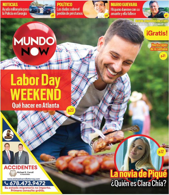 POLÍTICONOTICIAS MARIO GUEVARA Las dudas sobre el perdón de préstamos Ayuda millonaria para la Policía en Georgia Hispano duerme con su amante y ella fallece p.12 La novia de Piqué ¿Quién es Clara Chía? p.8p.5 www.mundonow.com ¡Gratis! p.21 deHoróscoposlasemana p.6 Labor WEEKENDDayQuéhacerenAtlanta p.23 1 al 7 de septiembre de 2022 • Año 43 • Edición N 0 1,623