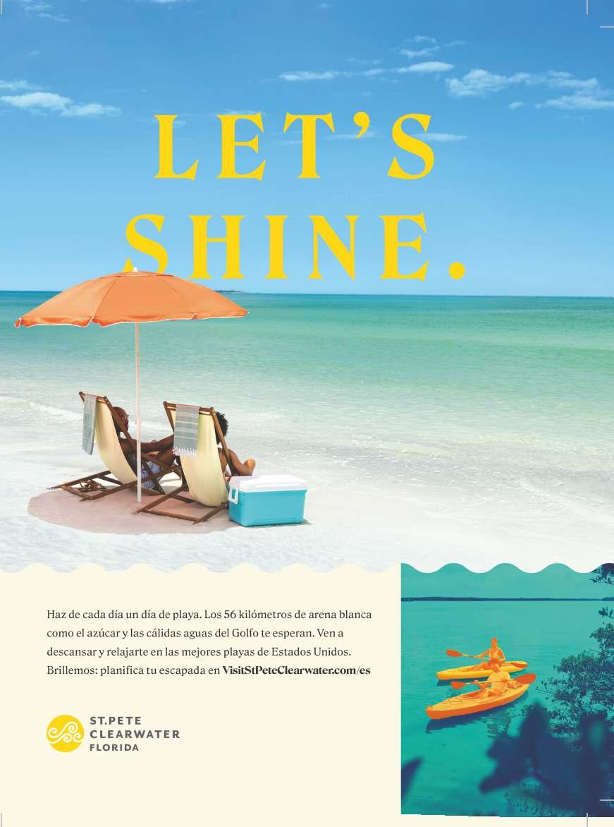 Eso significa que ahora es el momento perfecto para agregar St. Pete/Clearwater en la lista de tus próximas vacaciones y para experimentar de sus museos de clase mundial, murales increíbles, fabulosos restaurantes frente al mar, entretenimientoylasmejoresplayasdelosEstadosUnidos. Algoquenotepuedesperder,eselnuevoSt.PetePier,quese inauguró en julio de 2020. El extenso muelle de 26 acres con vistas al centro de St. Pete ofrece mucho para ver, hacer y comerenlabahíadeTampa.