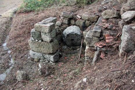 Figura 5 Aspeto da ruina (cabouco) do Moinho da Aldeia (n.º inv. 246) onde repousa a mó dormente ainda com a segurelha e o veio metálico.