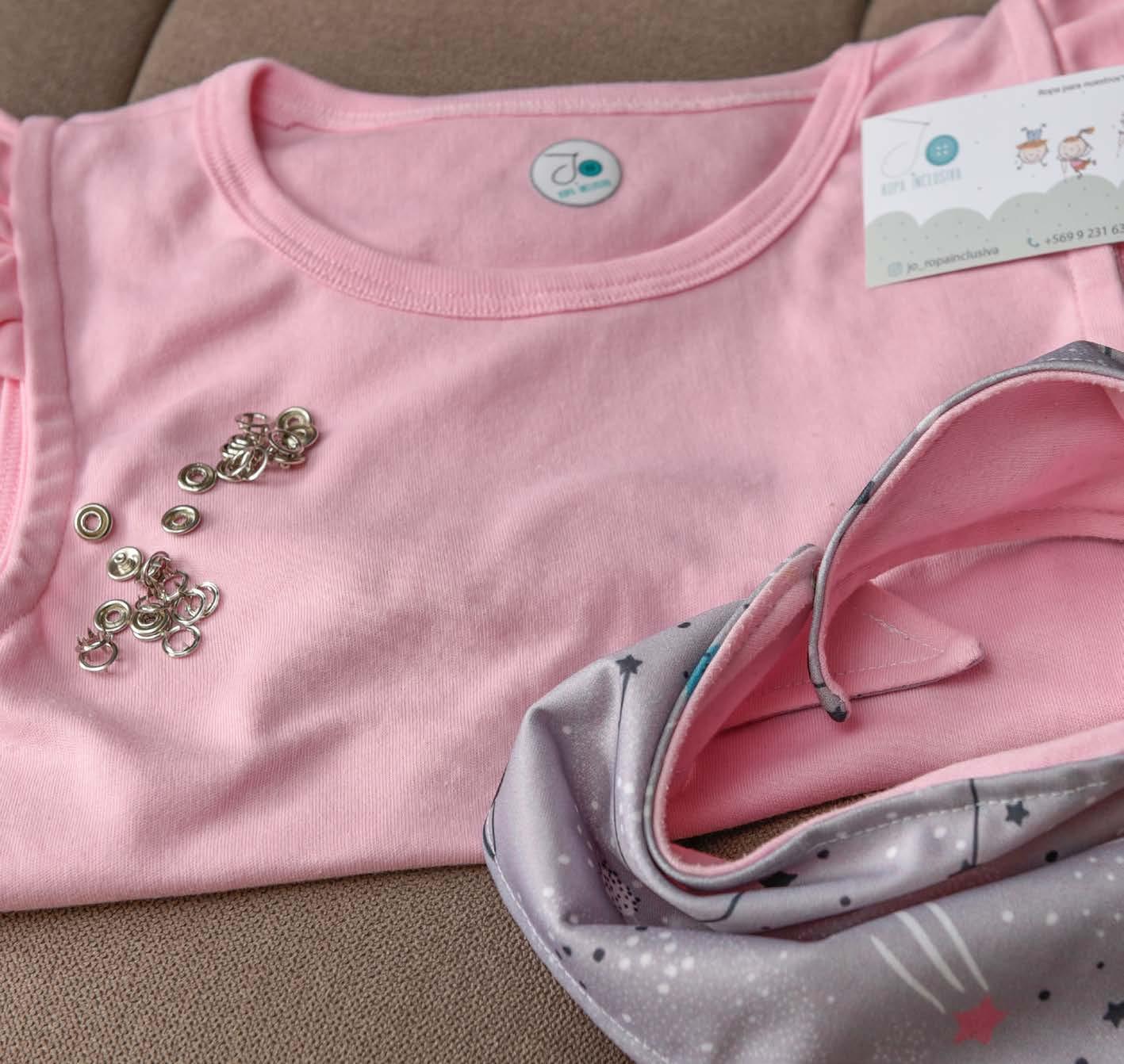 Jo Ropa Inclusiva es un emprendimiento creado por Annabella Ramos (42), vecina de Providencia, que durante la pandemia y estando al cuidado de su hija con capacidades diferentes, se vio en la necesidad de emprender con algo distinto.