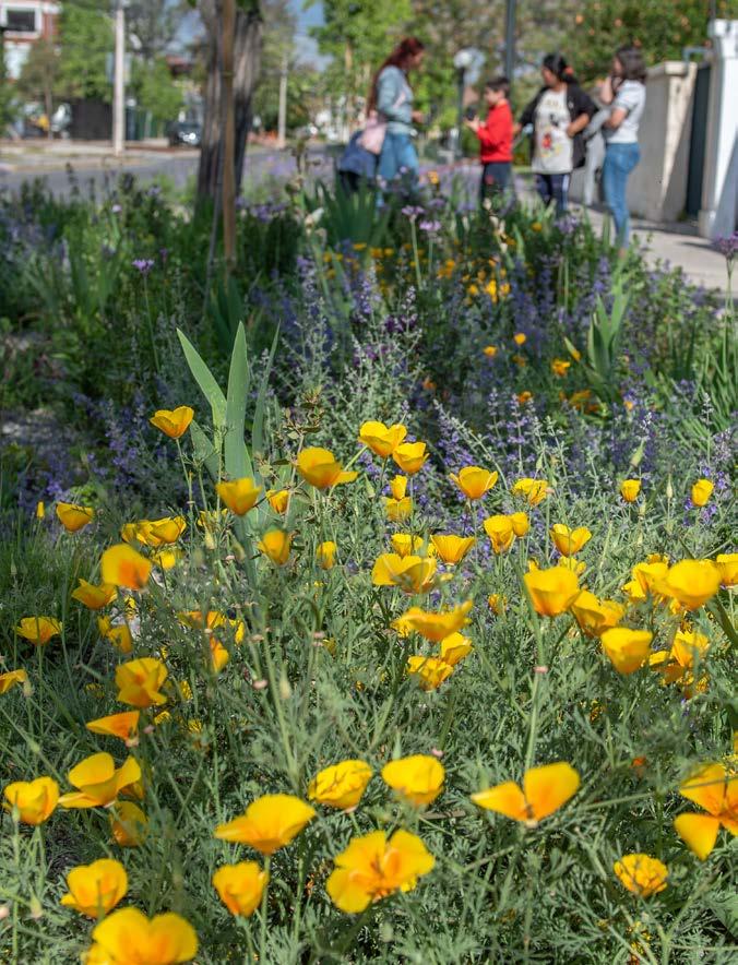 como un plan piloto en la calle Jorge Matte Gormaz, en donde un grupo de vecinos aceptaron el desafío de cambiar el pasto de sus antejardines, y plantar estas especies que sólo se riegan 2 a 3 veces por semana.