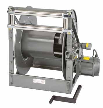 • Power rewind reels: Motor available in 12 or 24VDC, as well as 115VAC.
