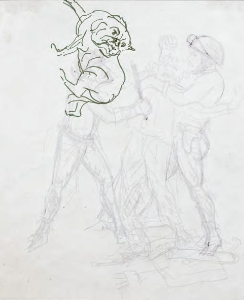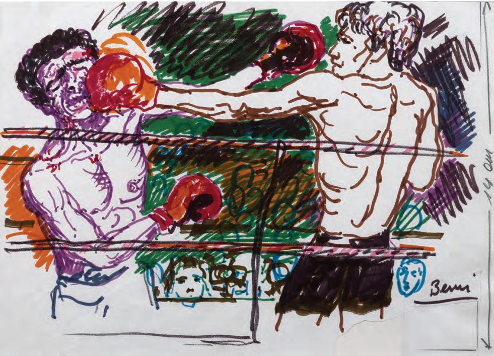 hAceS De relAcioneS. Antonio Berni practicó el dibujo desde los inicios de su carrera en sus múltiples variantes y en todos los géneros. Dibujante compulsivo, siempre tenía a mano papel, cuadernos, lápices y carbonillas. Cada una de sus series de trabajo parecen haber estado rodeadas de numerosas ideas inscriptas y ensayadas en el amplio mundo del dibujo, la línea, el trazo, el gesto. La necesidad del garabato permanente puede verse en gran parte de los papeles que fue acumulando durante sus casi sesenta años de actividad.