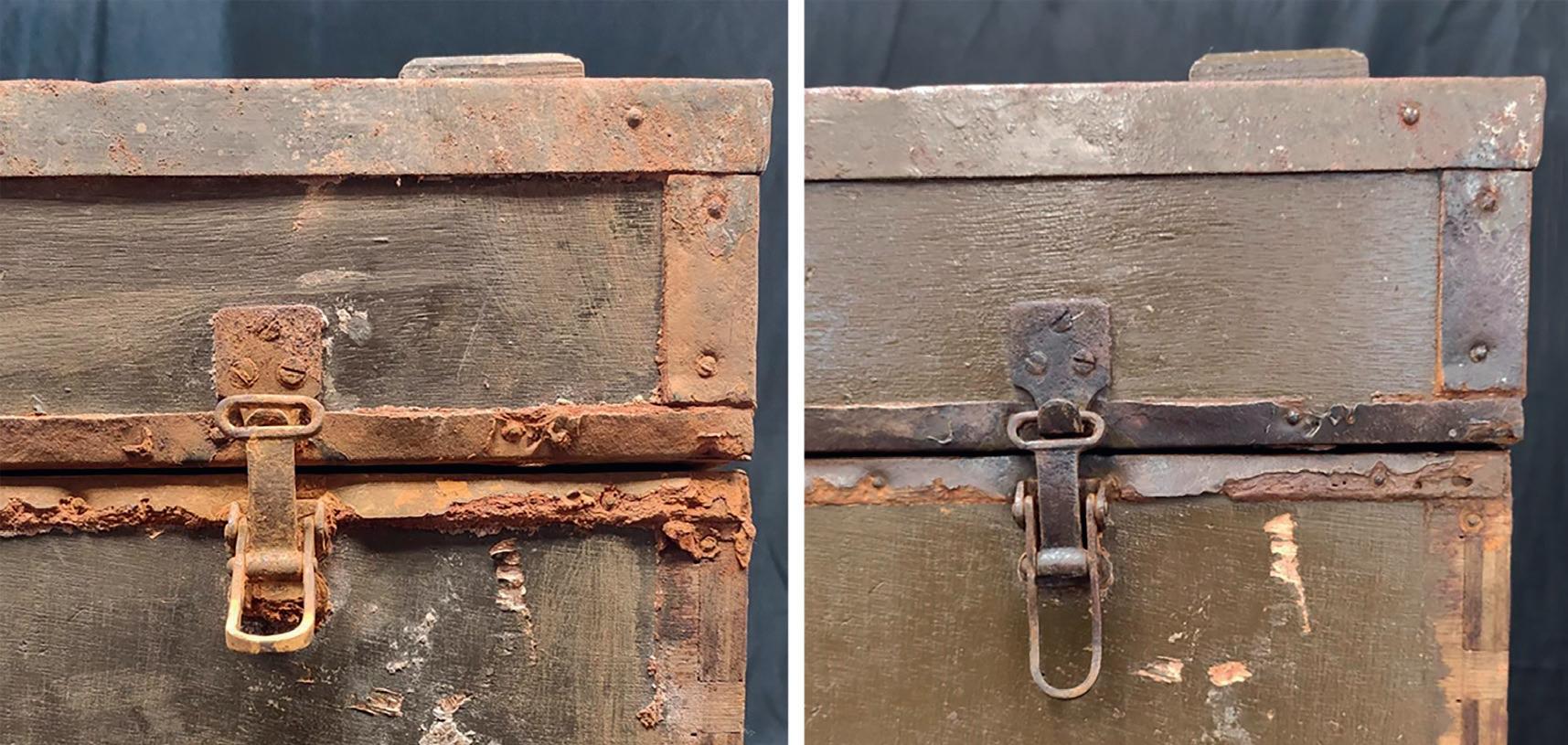 Izquierda, tubos de pintura al óleo en Taller Sert. Derecha, caja con óleos en Son Boter, muchos de ellos sin estrenar.