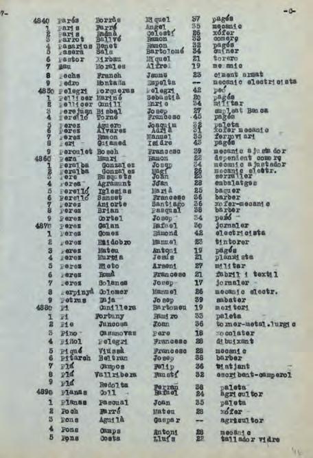 105 A finals de l’any 1939 ja consta treballant a Sabadell. El seu germà Salvador també consta treballant a la ciutat l’any 1939, però al padró de 1944 ja és baixa per defunció (informacions inèdites proporcionades per Esteve Deu).