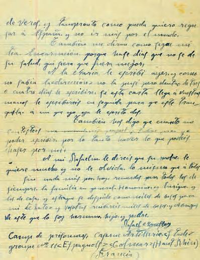 MEMÒRIA I FAMÍLIA Als Arxius d’Arolsen (Alemanya) es conserva la targeta d’inscripció del seu ingrés a Mauthausen. Eduard Garrigós sovint surt esmentat en la correspondència d’exili que mantingué amb la seva família de Sabadell el