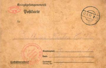 Carta postal enviada per Antoni Hilario Planellas a la seva muller, Balbina Mateu, quan ell estava internat al camp de presoners de guerra de l’Stalag XIII-A de HohenfelsOberpfalz, el mes de juny de 1940 (cedida per Antoni Hilario Mateu / AHS).