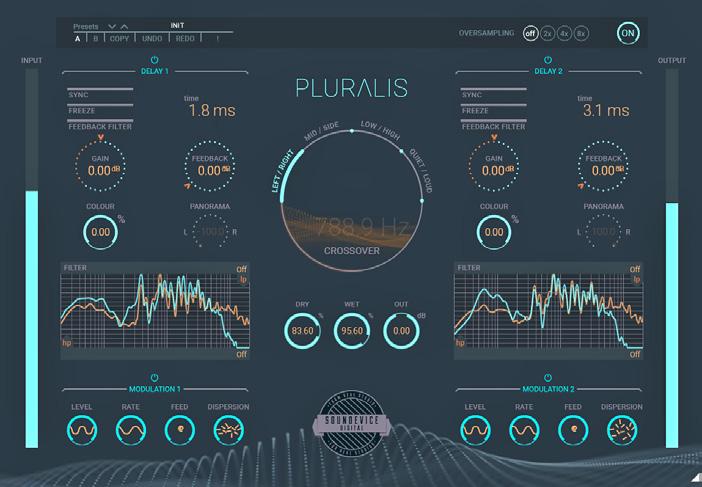 The Correlation meter checks the mono compatibility of any stereo audio file—an important last test when mixing. At the end of a mix, I always check on my stereo mixes especially when using 3D-like widening effects. For fixing live recordings using multiple microphones, there is up to 2ms of delay available to repair mismatched microphone distances of up to 68cm or 2 feet.