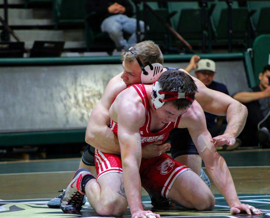 MATTHEW MUREN | MUSTANG NEWS Wick prepares to defend an escape attempt from his opponent.