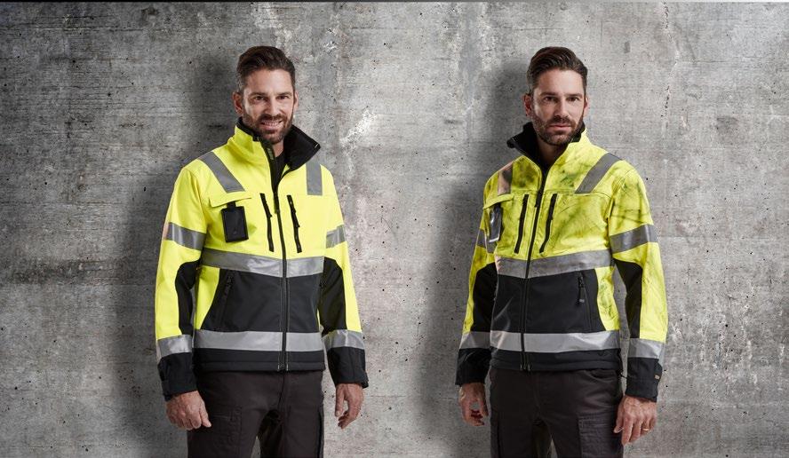 2-laags gebreid interlock materiaal, softshell type. Rekbaar en goed ademend, zowel geschikt als laag 2 als lichtere bovenkleding. EN 20471 - gecertificeerd, beschermende kleding met hoge zichtbaarheid. Het kledingstuk is gemaakt van Oeko-Tex®100 gecertificeerd materiaal.