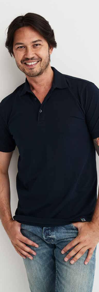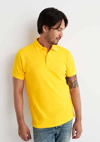 Polo piqué in stretchkwaliteit van organisch katoen met elastan voor een betere pasvorm. Zijsplitjes en ribboord aan de kraag en manchetten.