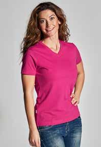Moderne T-shirt in stretchmateriaal met voor heren een ronde hals en voor dames een V-hals. Beide modellen zijn slim fit.