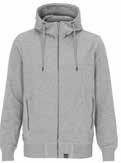 Hoody met lange ritssluiting in metaal en ribboord aan de manchetten en de zoom onderaan. Binnenkant van de capuchon in single jersey. Twee voorzakken.