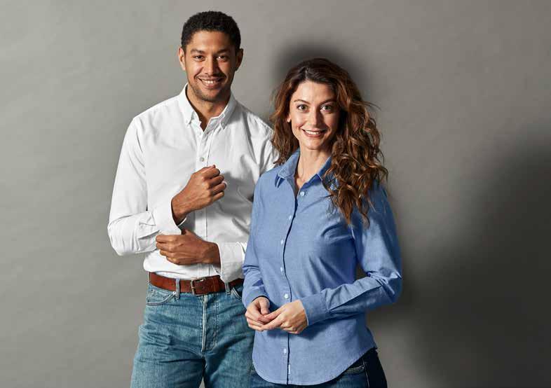 Klassiek oxford hemd met buttondown boord voor heren en turn-down boord voor dames. Nauwsluitende pasvorm.