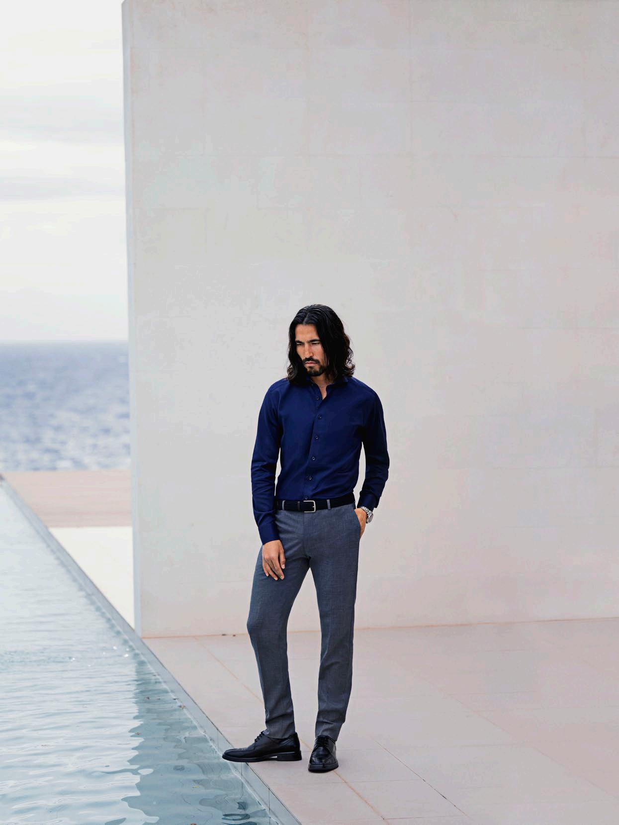 Beside our regular acclaimed style and finish, we went further into the construction of the fabric. We went far into the fabric. We enhanced the fibres on a molecular level, maintaining the feel and look of the cotton, but made it more resistant towards liquids and oils. Both from the outside and the inside. So if you spill, or get a nervous sweat attack, minutes before your big meeting, you still look like a million bucks. Brush it of and nail that presentation.