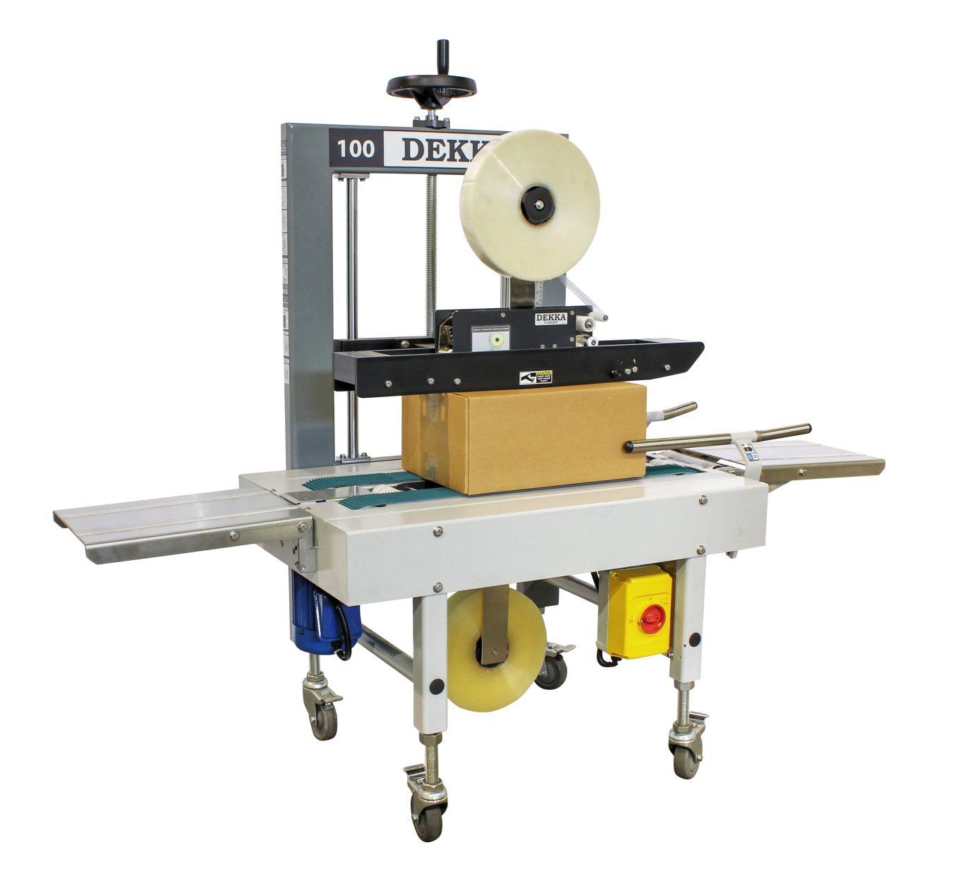 The DEKKA 100 is a pressure sensitive, bottom belt, semiautomatic case sealer It is designed to be the perfect pairing for the Dekka tape-head, providing an economic and reliable case sealing solution. It is designed with a heavy-duty structure and space saving design.