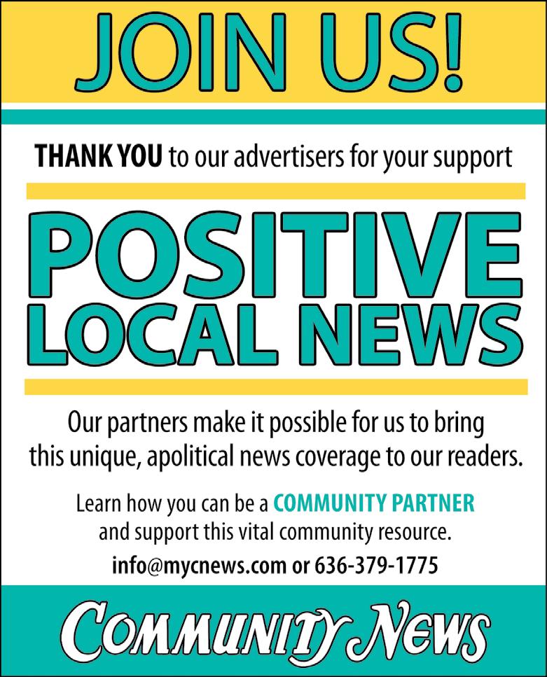 Published monthly with newsstand circulation to Wentzville and Lake Saint Louis plus newsstands in O’Fallon, Troy, Lake Sherwood and Augusta. For advertising information, please contact us at: Community News 2139 Bryan Valley Commercial Dr. O’Fallon, MO 63366 Ph: 636.379.1775 Fx: 636.379.1632 www.mycnews.com Copyright 2023 Huneke Publications, Inc. No part of the publication may be reproduced in any form without the expressed written consent of the publisher. Crossroads is a trademark of Huneke Publications, Inc. Any published use of Crossroads implying affiliation is strictly prohibited. PUBLISHER/EDITOR-IN-CHIEF Mathew DeKinder PUBLISHER EMERITUS/ GENERAL MANAGER Robert Huneke PRODUCTION Rebecca Brockmann Melissa Nordmann CONTRIBUTORS Avalanche David Finkelstein Cindy Moore STAFF WRITER Brett Auten VOL 19 | NO 1 2023 writers JANUARY MOORE ON LIFE – PG. 13 ENTERTAINMENT – PG. 15 ALWAYS AN ADVENTURE – PG. 12