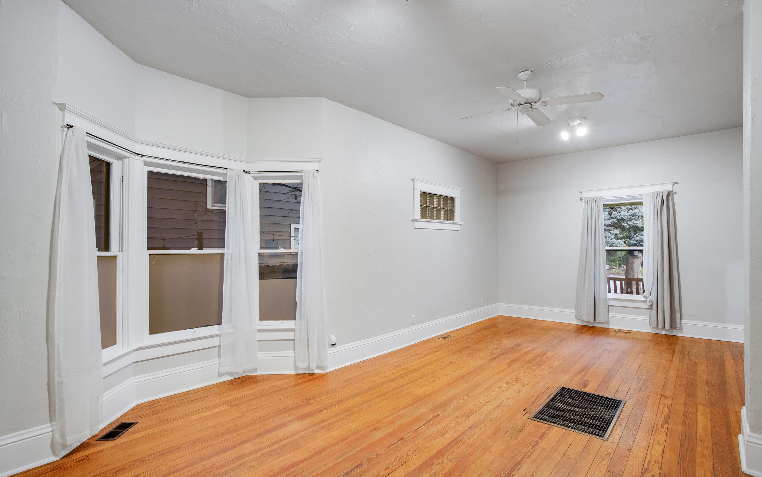 • Front bedroom features Southern exposure, plenty of light, and a walk-in closet