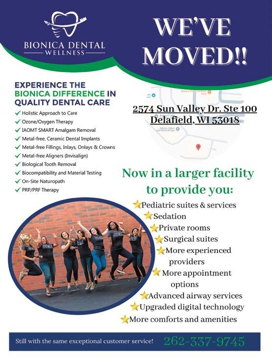 For more information or to schedule an appointment, call 262-337-9745, email Sydney at Hello@BionicaDentalWellness.com or visit BionicaDentalWellness.com. See ad on page 5.
