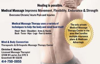 Wellness Center and Retreat on the peaceful Milwaukee River offers a variety of services including emotional stress release, counseling, nutrition, detox, Quantum energy healing, color therapy, facials, aromatherapy, laser therapy and body work. Bring your body and mind back to balance using natural and gentle therapies designed just for you. See ad on page 21.