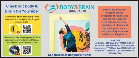Body & Brain provides a unique blend of yoga, tai chi, breathwork and meditation exercises for people of all ages and abilities to reestablish the body’s natural energy flow. See ad, page 18.