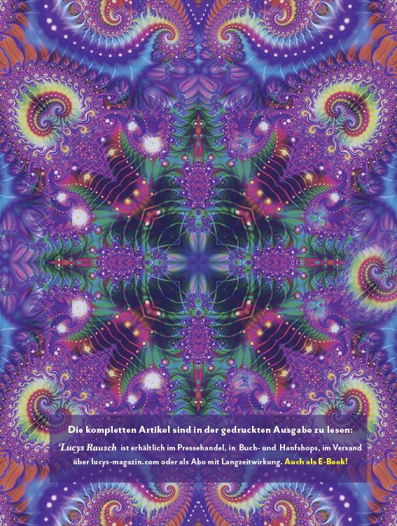 Ich bin besonders stolz auf eine Vielzahl lieber Kollegen und Freunde, die in der psychedelischen Welt eine große Rolle spielen und diesmal erstmals in Lucys Rausch zu Wort kommen, so die Ethnopharmakologen Jonathan Ott und Dennis McKenna, der MAPS-Gründer und -Chef Rick Doblin, der Chemiker und Substanzforscher Simon D. Brandt und der ehemalige LSD-Großproduzent William Leonard Pickard, der im Jahr 2000 erwischt worden und für 20 Jahre ins Gefängnis gewandert war, wo er seine Geschichte aufschrieb und so das Buch The Rose of Paracelsus entstand. Erst am 27. Juli 2020 war Pickard wieder auf freiem Fuß. Die Beiträge unserer Weggefährten bereichern diese Ausgabe, die sich nicht ausschließlich um LSD dreht, in ganz besonderer Weise.