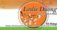 Trained Herbalist, Leslie Duong specializes in traditional herbal remedies and green tea. With over 25 years of experience, she offers personalized herbal consultations, organic herbal medicines, and a wide selection of premium green teas. Committed to natural healing and wellness through high-quality, safe, and effective herbal products. See ad, page 6.