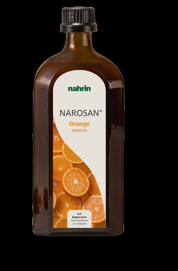 Narosan® Orange fournit 10 vitamines importantes, complétées par du magnésium et des fibres solubles (prébiotiques). Les vitamines du groupe B et les vitamines C, D et E contribuent au fonctionnement normal du système nerveux, aident à réduire la fatigue et soutiennent le système immunitaire. Le magnésium favorise une fonction muscu laire normale et contribue à une bonne fonction psychique, un atout particulièrement précieux en période de stress. L’association de fibres alimentaires solubles favorise une flore intestinale saine, considérée comme la base d’un bon système immunitaire.