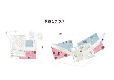 襞上にボリュームが形成されることに伴い、 大小様々な庭が副次的に形成される。その 大きさと場所によって性格の異なる庭は訪 れる人々の多様なニーズに対応する。賑や かな庭。工作のできる庭。ゆっくり本を読 む庭。池のある日本庭園のような庭。いろ んな庭があったら嬉しい。
