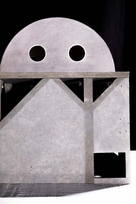 triangle 篠原一男の上原通りの住宅の模型制作。実際にコンクリートを打設し制作。立面の方 と壁面との表情の違い、チリを再現するためにスタディを繰り返す。 実際にコンクリートを用いて模型制作をすることで、構造合理性によって導かれる造形の確かさ、物質としての構造体が場に与える力を再認 識することが できた。作り上げた模型は上原通りの住宅に実際に訪れた時に感じた空間の強さと、まさに同じ物質的な強さを持ち合わせていた。ぴたりと 全てが合致し た時に立ち現れる抽象表現としての模型を超えた異様なオーラ。模型を超え建築家の思想が具現化された物質。単なる模倣を超えた創作とし ての完成体。 模型を作るということはどういうことなのだろうか。本制作を通して、新たな模型制作の意義を発見できた。素材の特性、構造、施工、あら ゆる側面にお いて建築の面白さを感じると共に、素材一つ選ぶことでさえ大きな決断を伴うという逃れることのない建築行為に伴う責任と難しさとを実感 した。 模型を作るということ