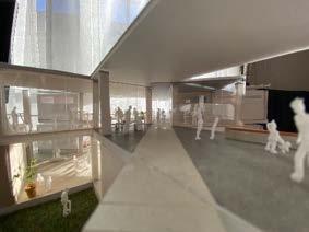 通りぬけできるながれ道を2階に通し、流れ道沿 に吹き抜けを配置することで、流れ道を通りなが ら地域センターでのあらゆる活動を見渡すことが できる。流れ道を中心に繰り広げられる地域セン ターでの活動。毎日の何気ない通り抜けからコ ミュニケーションや交流のきっかけが生まれて行 く。流れ道は地域センターから街へと裾野を広げ、 街全体に流動的な人の流れを生み出して行く。