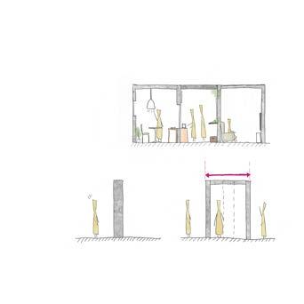 一様だった空間に立ち現れたヴォリュームがもつ4つの境界面によってこちら側と向こう側とで新たな関係性を 生む。
