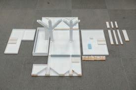 「1坪」という大きさに存在する4つの壁面が立ち上がる。立ち上がったヴォリュームがヴォイドとして周囲の 空間をつなぐ境界として存在する。