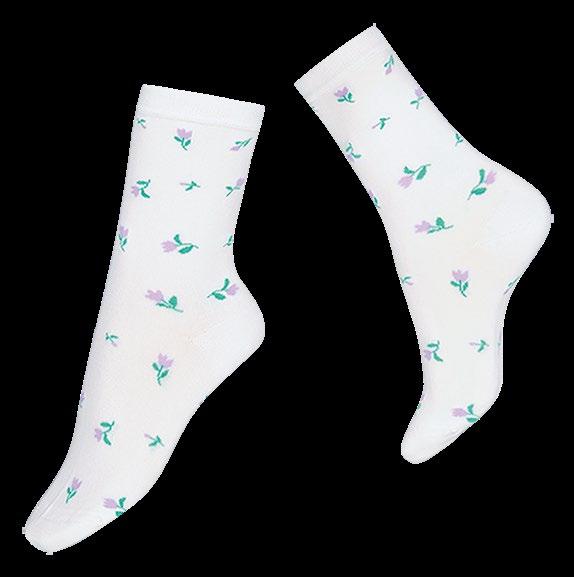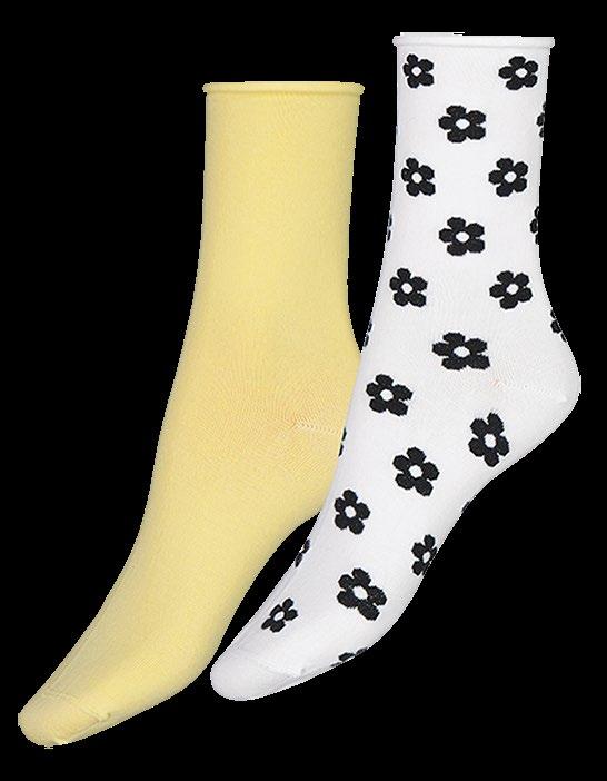 High-quality organic cotton ankle socks. The two-pair package includes one pair with a beautiful all over flower pattern and one pair one-coloured.