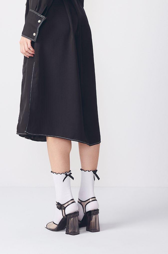 The addition of trendy sheer knee high socks elevates the look into a whole new stylistic sphere.