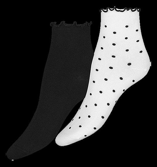 High-quality organic cotton short socks. Socks have beutifull frill edge. The twopair package includes one pair with a dot pattern and one pair one-coloured.