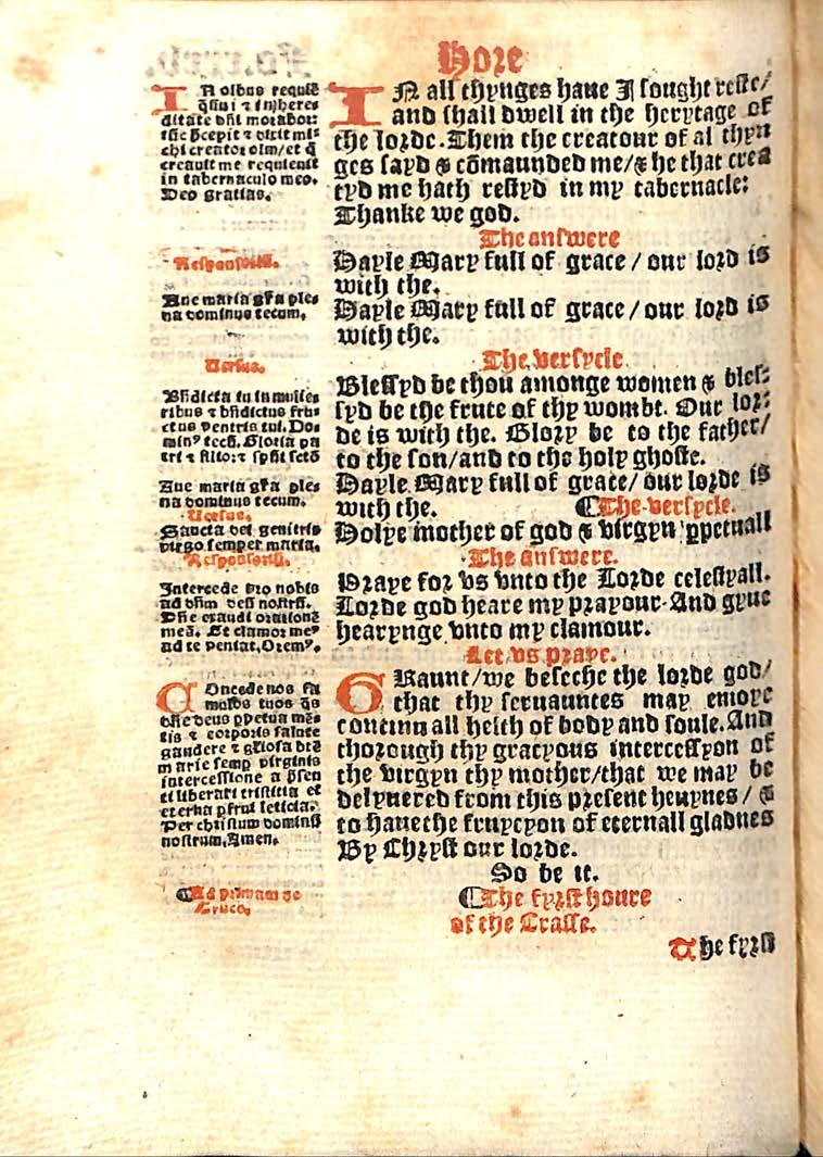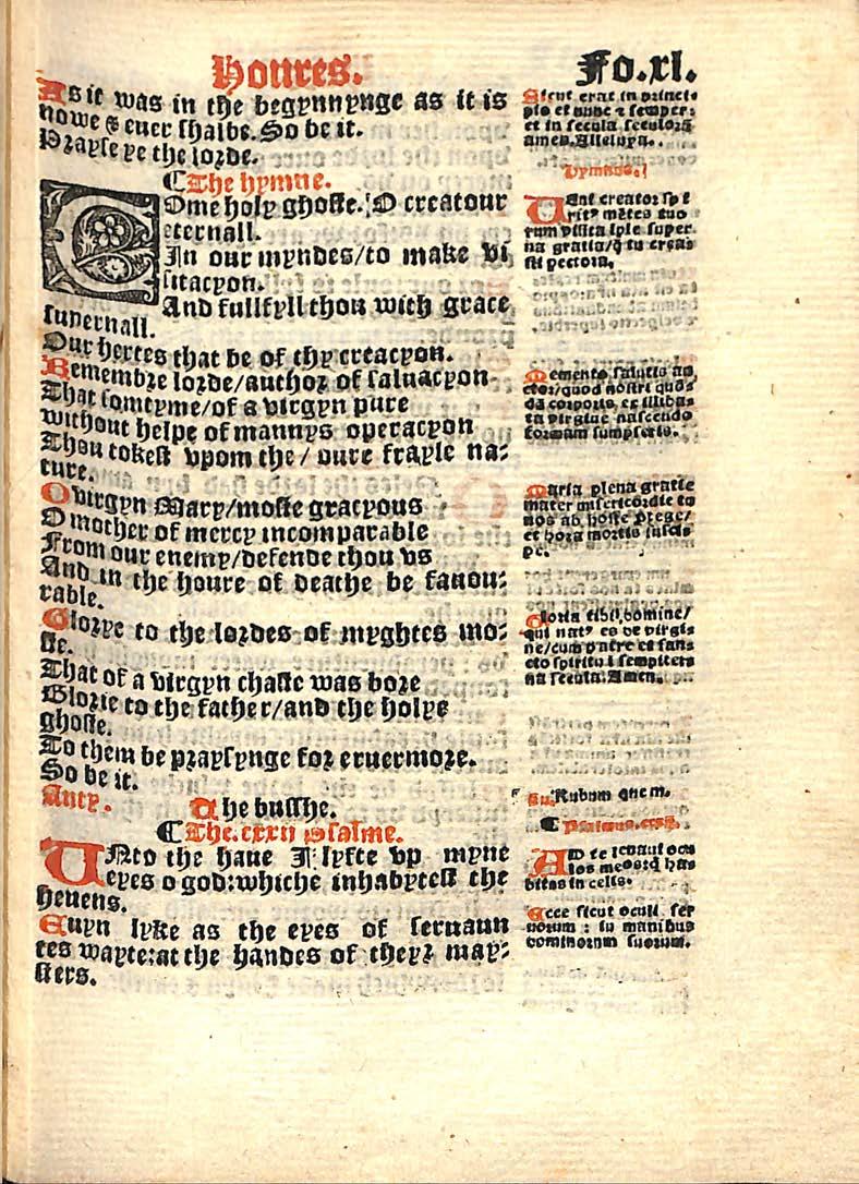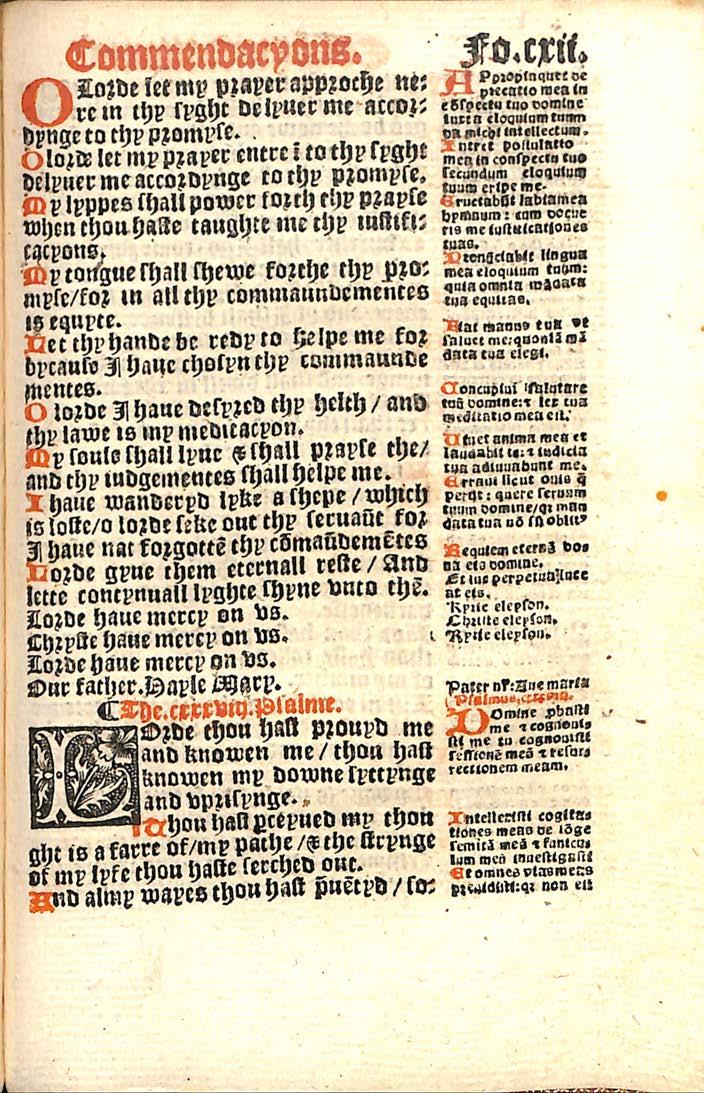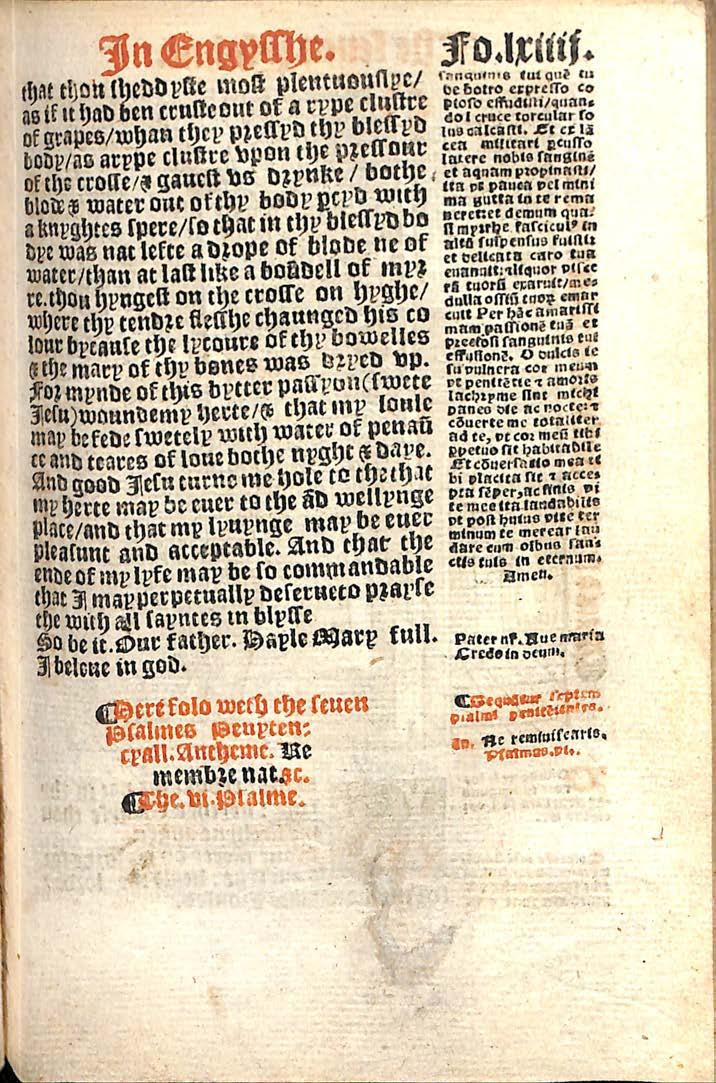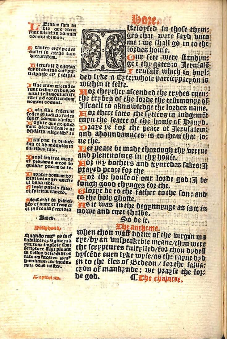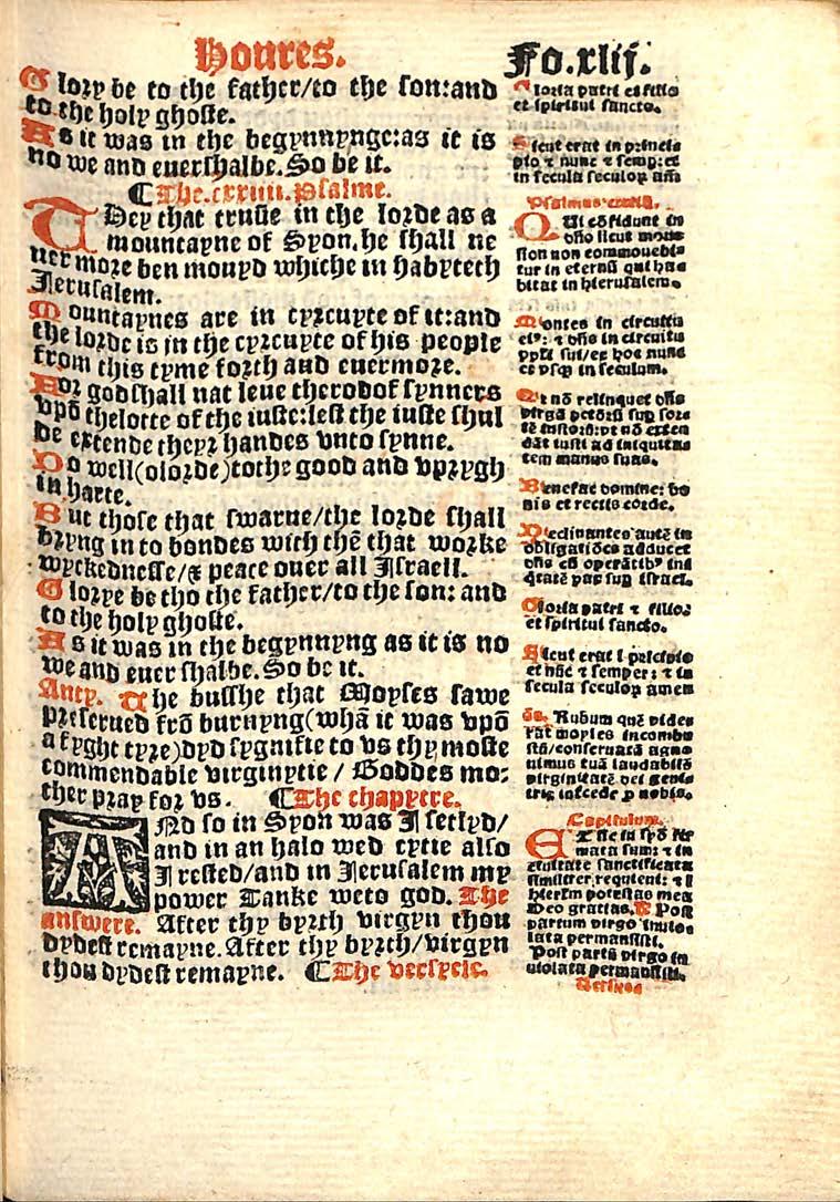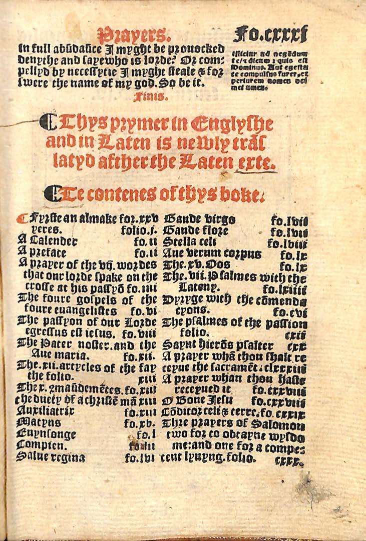 Hereafter foloweth the prymer in Englysshe and in latin sette out alonge: after the vse of Saru[m].