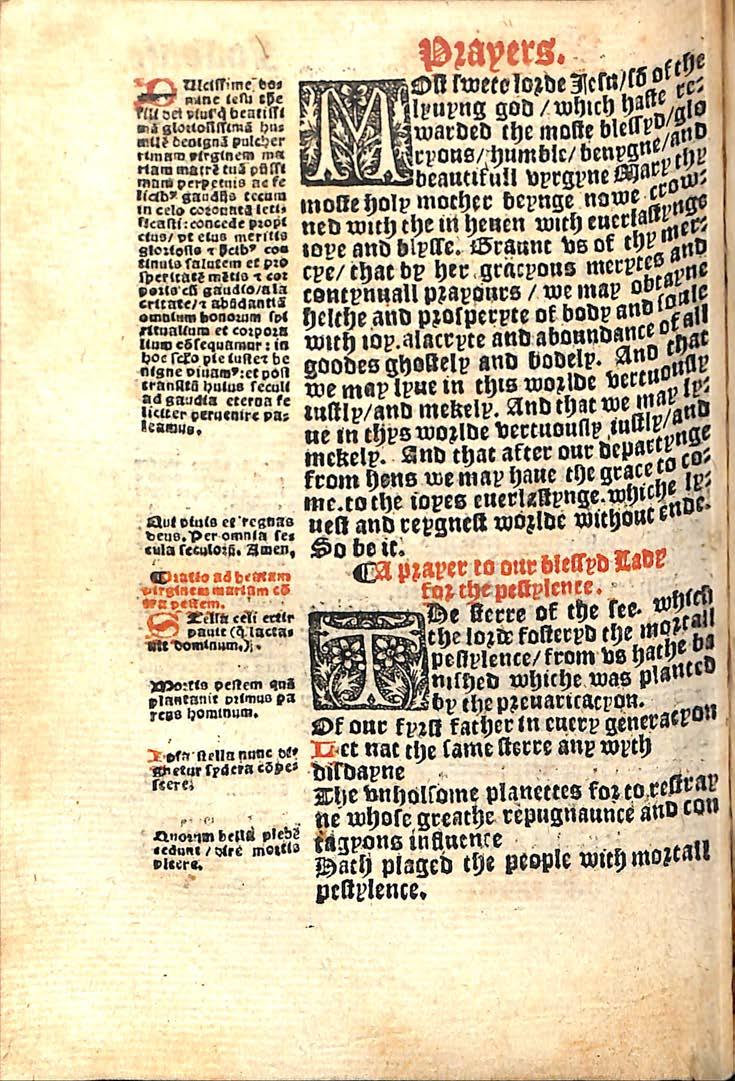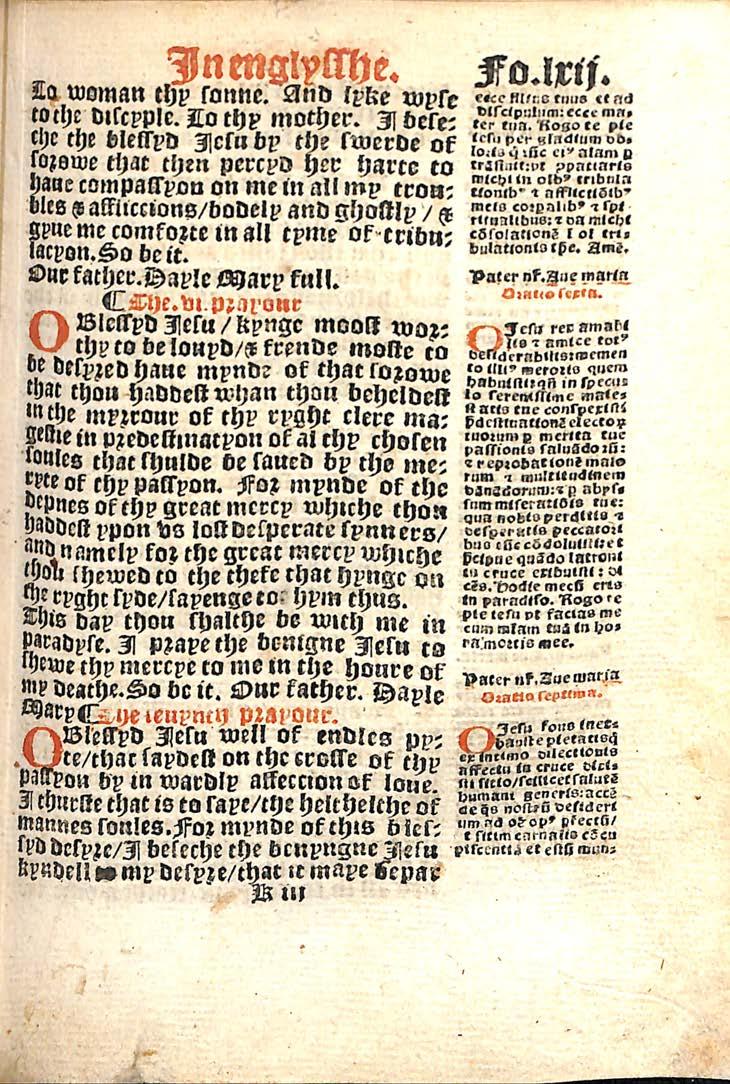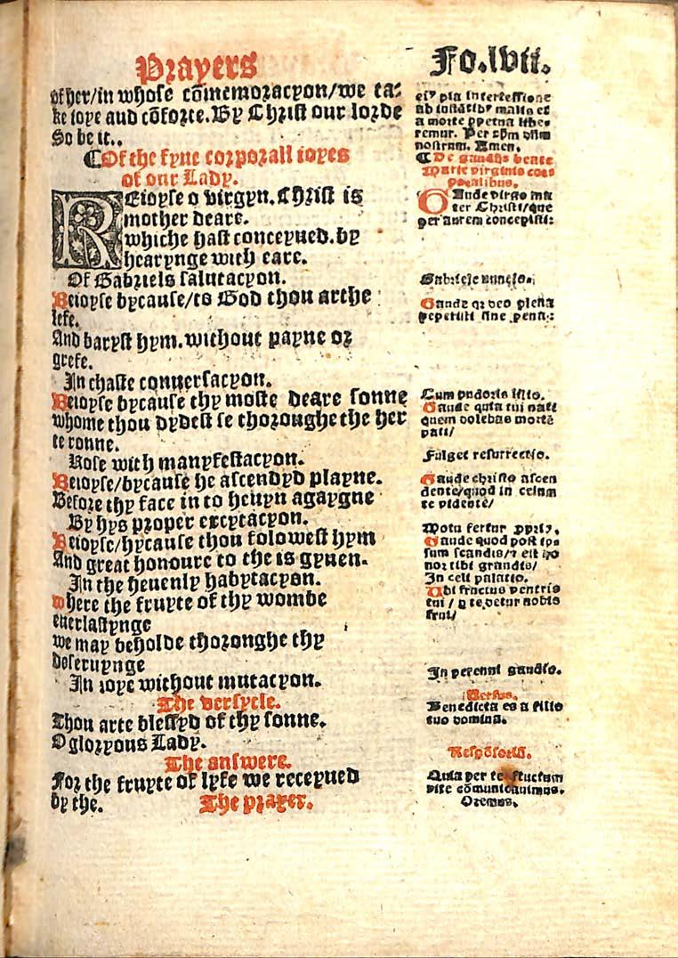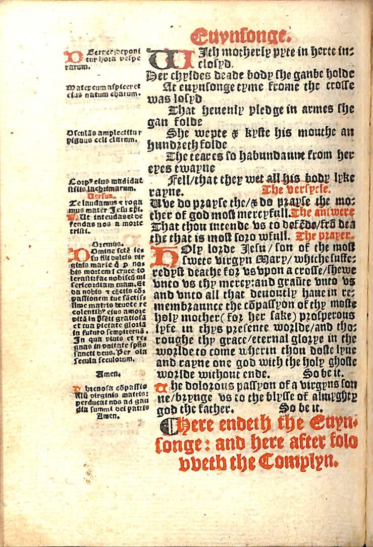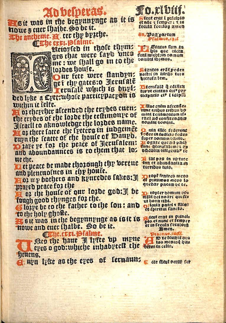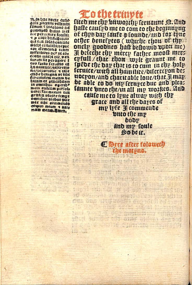 Hereafter foloweth the prymer in Englysshe and in latin sette out alonge: after the vse of Saru[m].