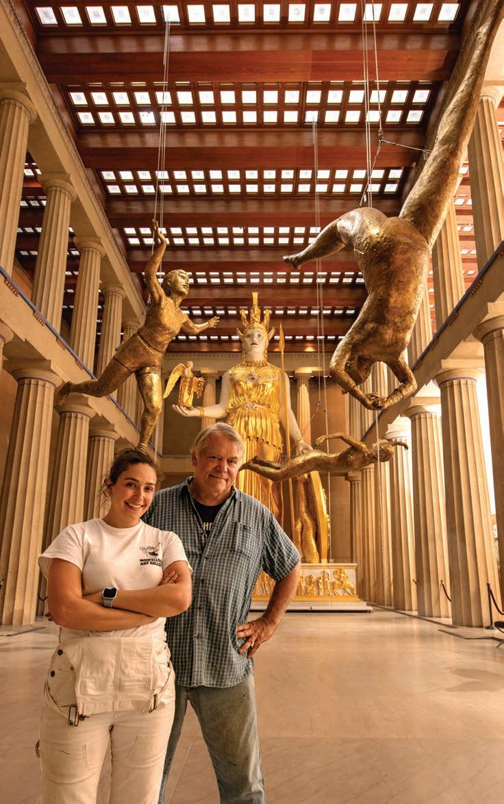 tep up close to the Athena Parthenos statue in Nashville — golden, glinting, stretching 42 feet toward the Parthenon replica’s ceiling — and you’re left dumbstruck by the sheer scope of what she is and represents.