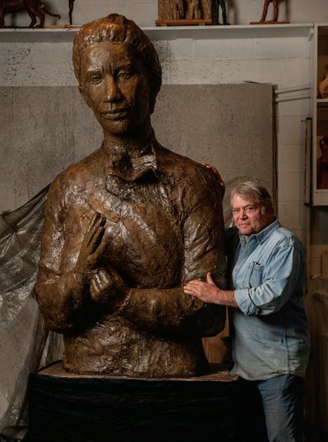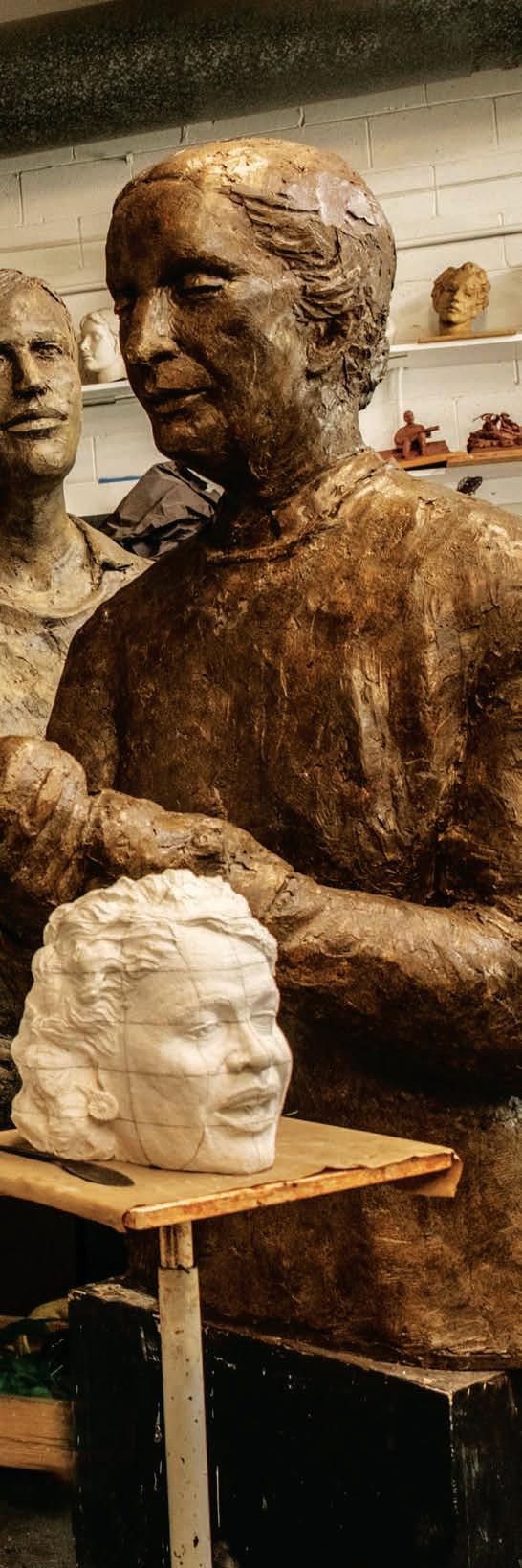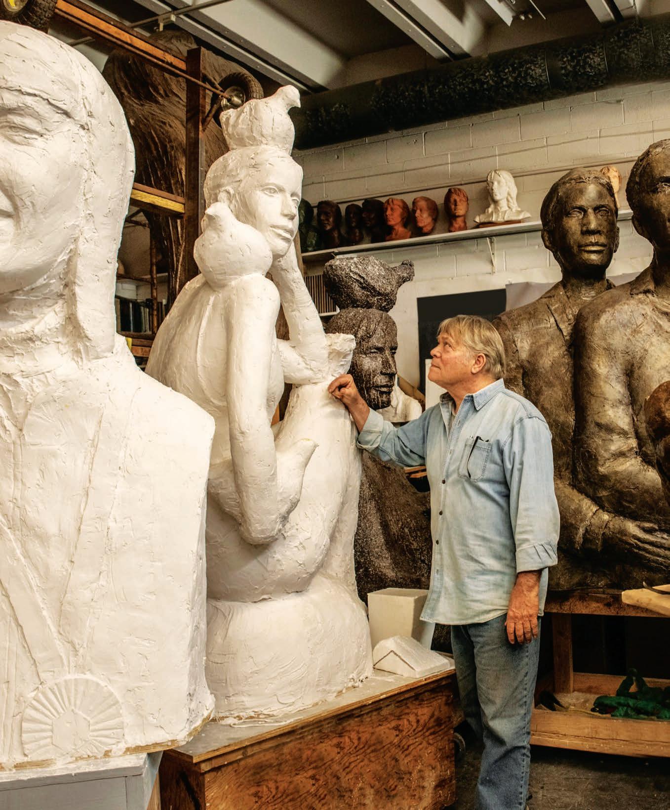 Alan LeQuire’s recent exhibition featured 24 large-scale sculptures and eight wall-anchoring relief paintings, each depicting or imagining “everyday heroes,” from activists and athletes to musicians and medical minds. Right, LeQuire envisioned and shaped the direction with apprentice Amber Lelli and a cast of dedicated assistants.