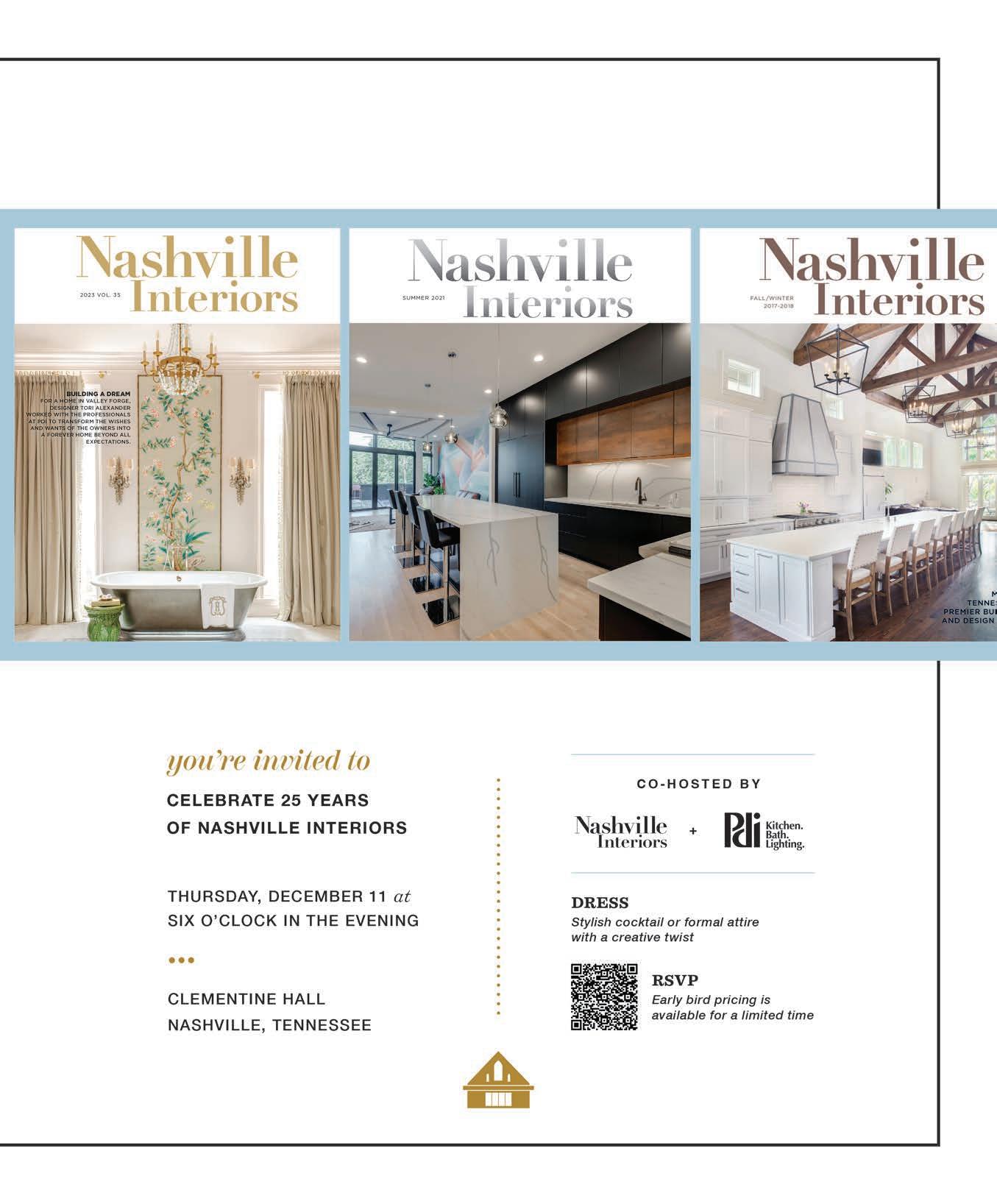 To request content reprints, suggest story ideas or notify us with website or social media issues, email Hollie Deese, hollie@nashvilleinteriors.com