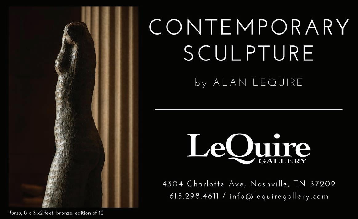 But amid the growth is the undercurrent of what makes Nashville so special — collaboration, creativity and artistic expression. Cass Contemporary just opened their doors, and the gallery is pushing Nashville art scene even further (page 89), including their contribution to this year’s expanded public art festival, Artville.