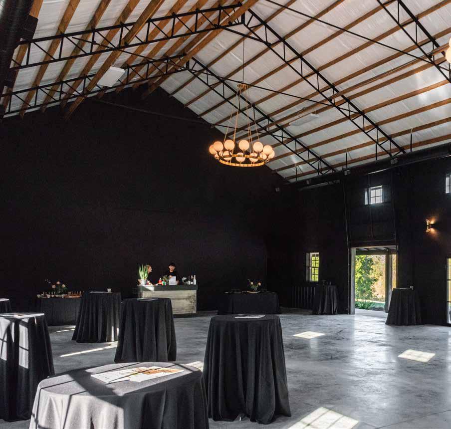 speed, was running a venue. Hembree spent the better part of a year renovating and designing the space, named Onyx Hall, taking her aesthetic of black and white and applying it to a traditional Tennessee barn setting.