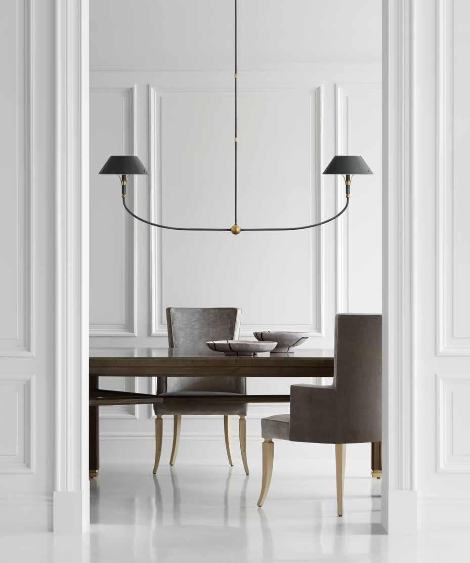 EXPERIENCE VISUAL COMFORT TURLINGTON XL LINEAR CHANDELIER IN BRONZE AND HAND-RUBBED ANTIQUE BRASS DESIGNER: