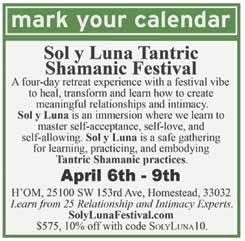 The Spirit Fest: Holistic, Metaphysical and Wellness Expo will be held on April 1, 10 a.m. to 6 p.m., and April 2, 10 a.m. to 5:30 p.m., at the Sarasota Fairgrounds Robards Arena. This annual event will feature 80 booths with a wide assortment of vendors, practitioners, readers, artists, authors and demonstrations.