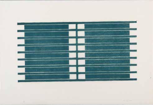 Kim Lim. Gate. 1974. Woodcut (blue on white), 46.5 × 62 cm. Collection of National Gallery Singapore. Image courtesy of National Heritage Board, Singapore.
