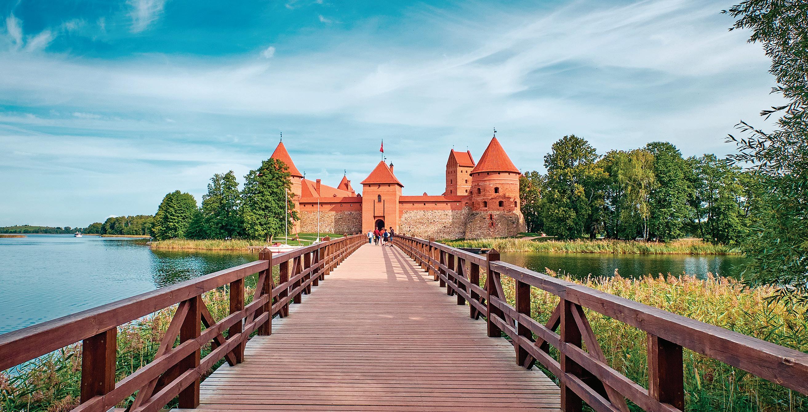 Explore Trakai, a 14th-century castle built on a small island in the middle of a lake, on a privately guided tour. After learning more about the Karaite people’s history and cuisine over lunch, travel on to the Ninth Fort. Take a privately guided tour of the exterior of this fortress turned into a WWII prison, followed by a self-guided exploration of the prison’s interior. Continue to nearby Kaunas City for a brief walking tour ending at a local restaurant, where you’ll enjoy dinner.