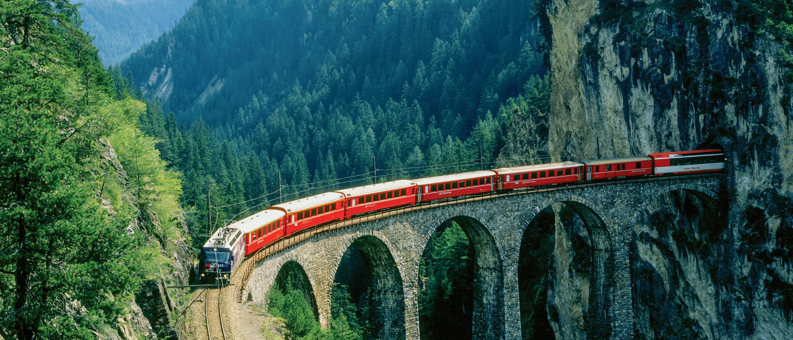 Take your seat on the world-famous Glacier Express, and set off on a breathtaking journey across three high-mountain passes, over 291 bridges, and through 91 tunnels. Enjoy the elegant atmosphere of the train as we soak up magnificent vistas of skyscraping, glacier-glazed peaks on our way to the Upper Engadin Valley. Disembark in St. Moritz, and settle into your hotel for the evening.
